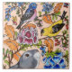 One of my most popular designs, a cute, pudgy gray bunny rabbit investigates a colorful, Jacobean - inspired flower garden. There are also two little birds and a snail! The mural is sold as two separate tiles, top half and bottom half, with several soft background colors.This mural would be cute in any tile setting and will add a touch of color and whimsy. Perfect framed tile art (you supply the frame). The mural will brighten a bathroom, child's room or kitchen - and how about that patio or porch nook? Whimsical, unique, original tile artwork & design by Tuzi Williams. Available only on Zazzle, the production company for my artwork, with a 100% customer satisfaction guarantee!