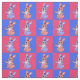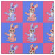 Kawaii Cute Pink and Blue Bunny Rabbit Checkered Surface Pattern Fabric.