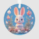Adorable cartoon bunny surrounded by colorful holiday decorations, creating a cheerful and whimsical ambiance. Perfect for themes of festivity, decoration, and joy.