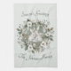 Cute Rabbits in a Floral Winter Wreath Kitchen Towel