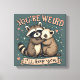 This adorable design features a sweet raccoon and ferret locked in a warm embrace, surrounded by soft hearts and twinkling stars. Above them, playful lettering reads “You’re Weird” in charming vintage-style type, while a hand-drawn banner beneath says “I’ll keep you,” adding a quirky touch to the heartfelt scene. The earthy tones and soft pastel accents create a cozy, cottagecore vibe, perfect for those who love a mix of humor and tenderness in their décor or style. The illustration’s whimsical detail and warm, affectionate mood make it a delightful way to celebrate friendships and relationships that are wonderfully unique. AI generated artwork.