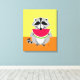 Contemporary wildlife art of a raccoon eating a watermelon, orange and yellow background colors can be edited to go with any room decor