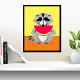 Modern geometric wildlife art of a raccoon eating a watermelon, orange and yellow background colors can be edited to go with any room decor
