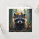 An adorable raccoon sitting in a forest in Autumn covered Fall leaves blank card.