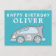 Cute Race Car Blue Happy Birthday Boy Name Postcard
