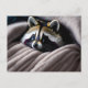 Cute Racoon nestled in a soft blanket, wild animal, animal, cute, AI Generation, Postcard