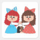 Cute Rag Doll Friends Girls with Bows and Dresses Square Sticker