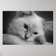 A photo of a ragdoll kitten in black and white with a splash of colour