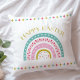 Throw pillow with fun colorful rainbow and the words "Happy Easter". Coordinating back. View all of our decor in our Zazzle store!