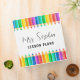 Cute Rainbow Color Pencils Personalized Teacher 3 Ring Binder