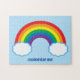 Pretty rainbow puzzle with a cute blue sky background with your own custom text.