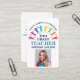 This cute custom school teacher business card features your elementary school name and job title. Customize with your staff information under the cool rainbow group of teachers holding hands. Stick people raising their arms in this colorful community design makes a beautiful design. Personalize with your own contact details and office hours on the back.
