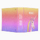 Cute Rainbow Glitter Unicorn Personalized 3 Ring Binder is designed with a faux glitter background. The front has a big pretty white unicorn face. She has pastel rainbow hair and flowers on her head. Personalized with name in white lettering across the front center. Kid's custom text words are on the spine. You can enter a school subject or your favorite quote.
