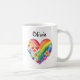This cute mug features a rainbow heart design with flowers, in a watercolor style. Personalize with a name above the illustration, for a stylish individual gift.