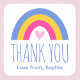 Show your appreciation with this stylish birthday party sticker! A cute design featuring a colorful rainbow over a heart, and personalized with a child's name. This custom template is great for kids' party favors, envelope seals, or for fixing ribbons and tags to parcels. Perfect for thanking guests at children's birthday parties. Printed colors: yellow, pink, blue and white. Shop the online collection for more popular product ideas for children's birthday celebrations!