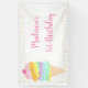 This adorable birthday banner features our hand painted watercolor ice cream cone with glittery gold embellishments and cute rainbow sprinkles in pastel colors.