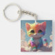 Cute Rainbow Kitten Upon a Cloud Keychain