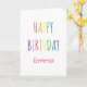 Cute Rainbow Lettering Birthday Card featuring fun "HAPPY BIRTHDAY" lettering on the front in the colors of the rainbow, with personalized name underneath in trendy hot pink. The optional greeting inside the card can be left as it is or personalized/deleted as desired.