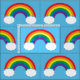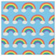 Beautiful rainbow with white clouds in a cute pattern on cool baby blue fabric. Pretty rainbows make everything more cheerful and happy.