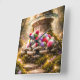 A colorful plush cat rests in a magical forest filled with soft light, flowers, and warm sunlight. This cute and vibrant wall clock brings a joyful and cozy atmosphere to any space, making it perfect for kids rooms and playful interiors.