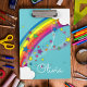 The bottom of the clipboard features a customizable text area in a playful white script font, perfect for adding a first name, class subject, or teacher's name. Whether you are organizing homework, holding nursing rounds notes, or just love a pop of color in the office, this personalized rainbow clipboard makes organization fun and magical.