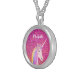 Cute Rainbow Unicorn Pink Glitter Personalized Silver Plated Necklace