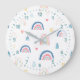Cute Rainbows & Hearts Pattern Large Clock