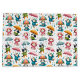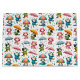 Add mirth to the gift-giving experience with this whimsical gift bag, which features an AI-generated repeating pattern of cute kitties and puppies garbed in galoshes, jackets, and rain ponchos and wielding colorful umbrellas while equally colorful raindrops fall about them.