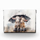 Watercolor Two Adorable baby goats in the rain with rainboots and an umbrella -