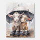 Watercolor Adorable baby goats in the rain, some with rainboots and an umbrella -