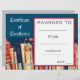 A bright colorful Reading Award Certificate suitable for use by a teacher for a school classroom or school assembly presentation. This orange certificate features a picture of library books cartoon and is able to be personalised to include student's name and personal achievement. Date and teacher's name also can be personalised. Simple and easy to fill out. Good teacher's resource.