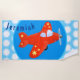 This happy red plane is flying to the beach! Drawn in cute cartoon illustration style on a blue background for a fun day!