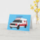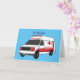 Cute red ambulance van cartoon card