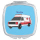 Cute red ambulance van cartoon compact mirror