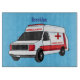 Cute red ambulance van cartoon cutting board