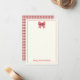 This cute note card features a red and cream gingham plaid bow on the front with a matching red gingham pattern on the back. Personalize with your choice of name or special text.