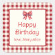 This cute sticker features a red and cream gingham plaid bow with a matching red gingham pattern. Personalize with your choice of special text. Great for any occasion.