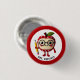 This decorative button for teachers features features a cute felt-like image of a red apple character wearing glasses and holding a yellow pencil with a red border. Image generated with AI