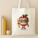 Cute Red Apple Character with Pencil Teacher Name Tote Bag
