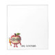 This notepad for teachers features a cute felt-like image of a red apple character wearing glasses and holding a yellow pencil with a teachers name to personalize. Image generated with AI