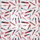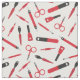 Nail artist fabric in a cute manicure pattern with manicurist tools in red and black with heart details.