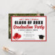 This cute red custom senior photo grad party invitation features your high school or college name for the class of 2026. Customize with your graduate name under the chic, bold handwritten script for a great personalized graduation celebration invite that is decorated with balloons and a grad cap. Add a full photograph on the back.