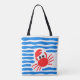 Add a splash of seaside charm to your shopping! This tote bag features a playful bright red crab surrounded by flowing blue waves, bringing fresh coastal vibes to any shopping excursion.