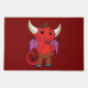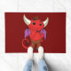 Welcome guests to your home with a bit of humor using this red devil doormat. This durable entryway rug features a vibrant illustration of a thinking cartoon demon, perfect for setting a fun tone at your front door during halloween or all year round. It is a great conversation starter that combines practical dirt-trapping functionality with a cheeky and misunderstood mythical creature design.