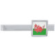 A Square Rhodium Plated Tie Bar, with a cute red dragon on a green and white background, similar to the Welsh national flag; from a hand-painted whimsical illustration by Judy Adamson.