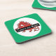 A set of square, cork-backed Coasters or Drink Mats to personalize, with a cute little red dragon holding a place to add your name or other text.