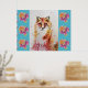 Cute Red Fox Animal Teal Rose Roses Poster, with a fully customizable name. A glorious watercolor floral design. Designed from my original watercolor paintings, that I painted from my own flower garden.