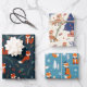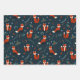 Cute Red Fox in Three Christmas Patterns Wrapping Paper Sheets