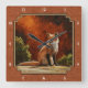 Cute Red Fox Sitting In The Sun Square Wall Clock