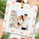 Red Gingham Plaid Watercolor Photo Square Christmas Holiday Ornament - Elegant custom family photo textured watercolor illustration design. Personalize with your family photo, name, and year.